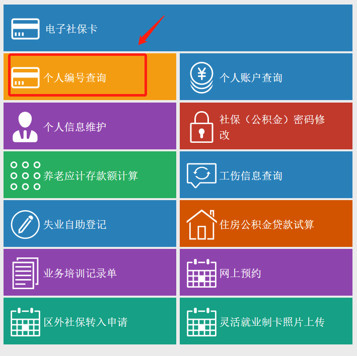 2.点击自助服务 ——【个人编号查询】