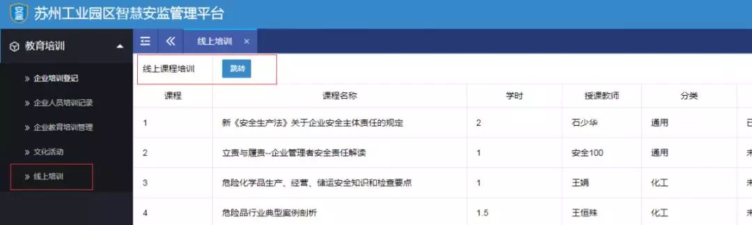苏州工业园区专门开通了线上培训课程,组织企业从业人员参加安全生产线上培训,并按要求报送培训结果情况。要求各生产经营单位将复工复产前全员安全生产教育培训当作重点工作来抓,切实提高从业人员安全意识,保证从业人员熟悉安全生产规章制度和操作规程,掌握本岗位的安全操作技能。