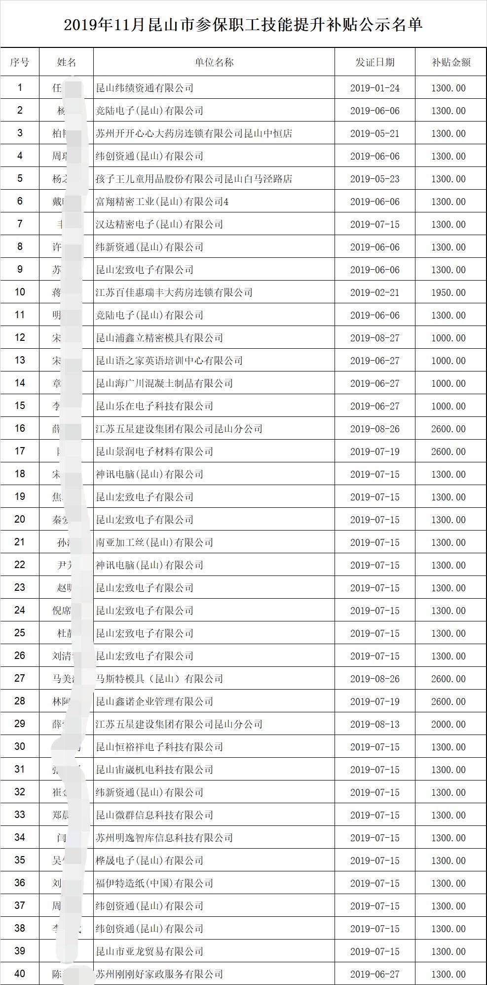 昆山市参保职工技能提升补贴公示 昆山市参保职工技能提升补贴公示名单