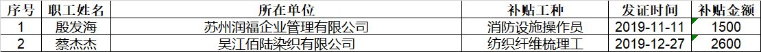 苏州市吴江区参保职工技能提升补贴发放公示