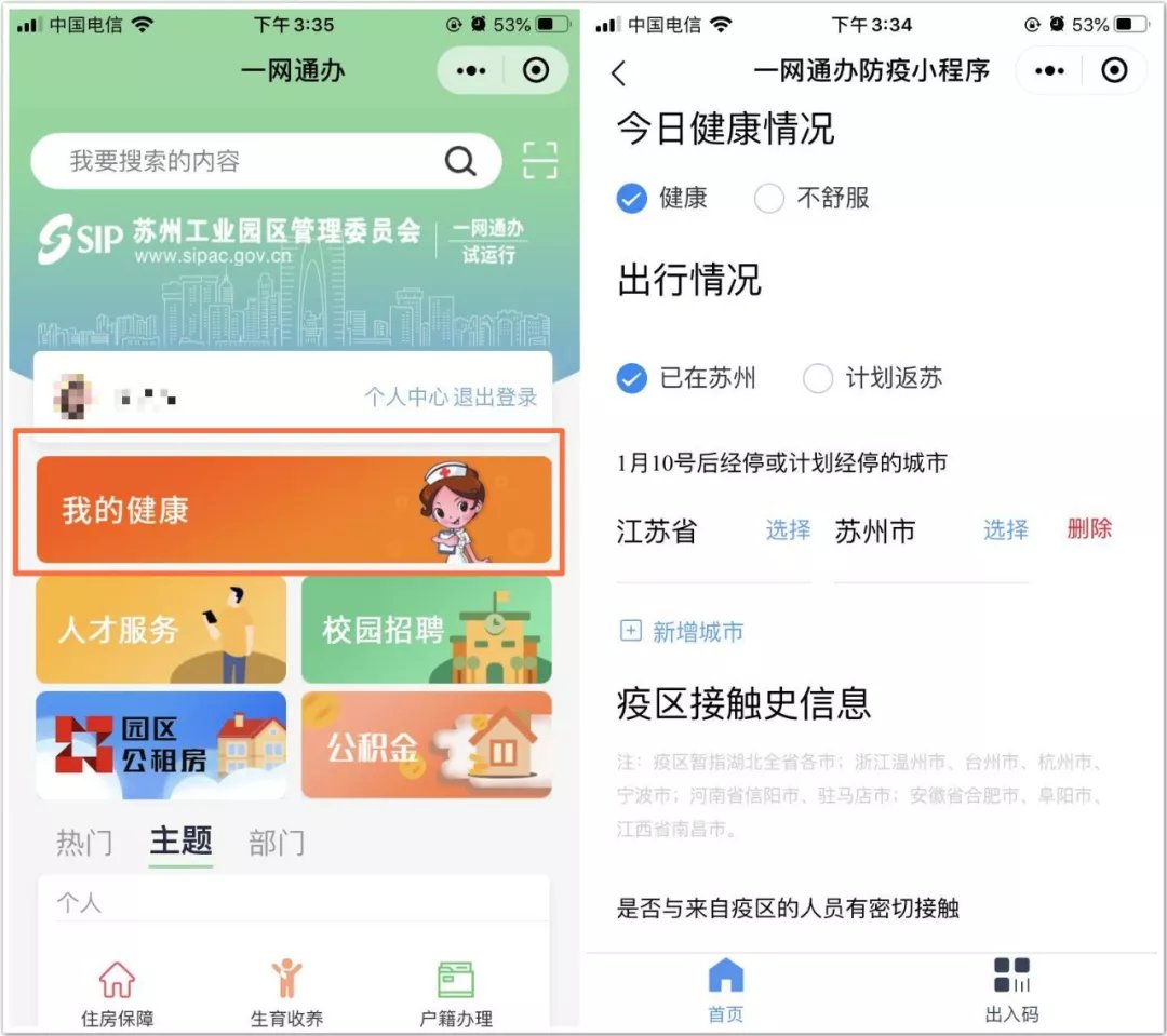 居民群众可登陆一网通办平台,然后点击“我的健康日报”进行自助信息登记,主动上报个人情况,协助疫情排查。有了这个在线数据,疫情防控一线的社区工作人员可以减轻数据采集压力,减少数据重复采集,减少上门问询,实现“让数据多跑路、排查少接触”。