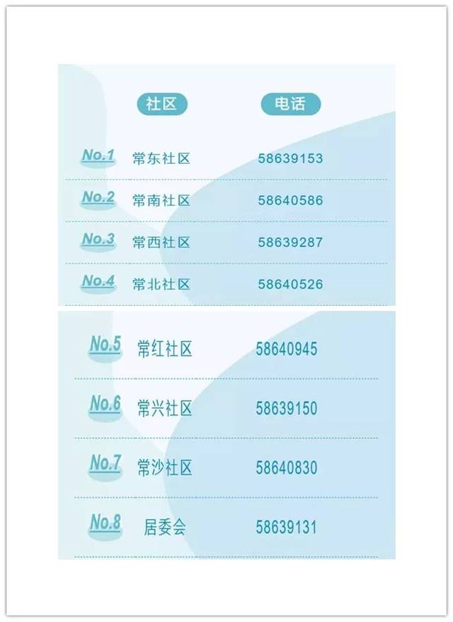 为方便相关人员报告信息,特公布常阴沙各社区(居委会)疫情防控工作电话如下: