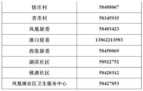 凤凰镇各村社区疫情防控工作电话如下: