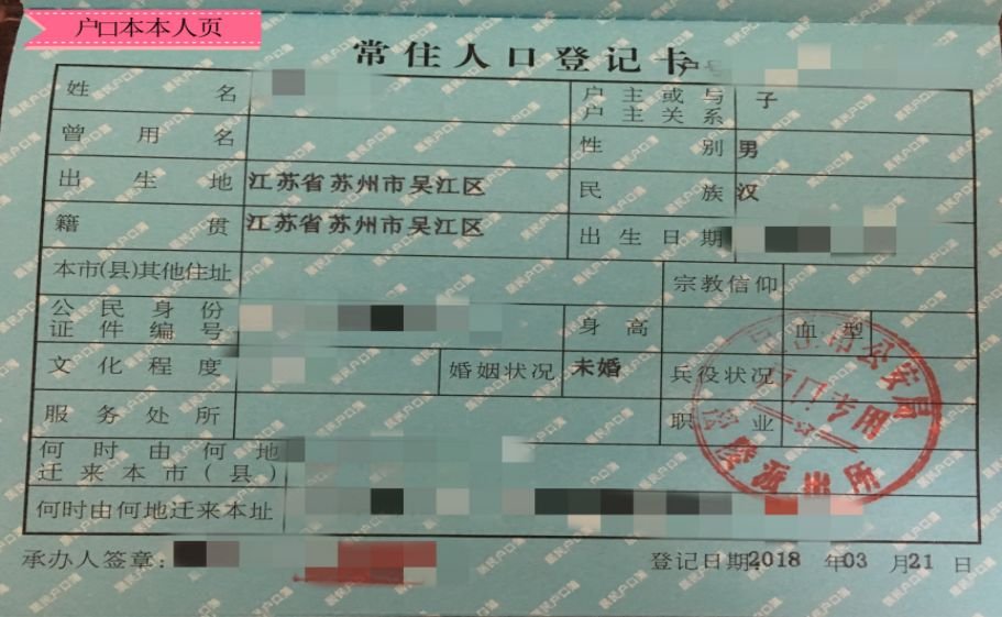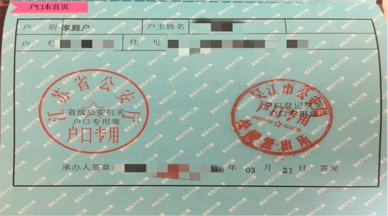 户口本首页样张:
