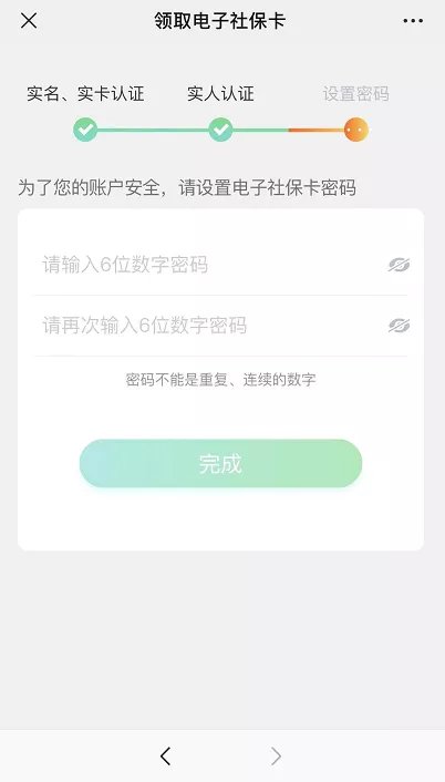 设置电子社保卡密码,密码为六位数不连续重复的数字密码