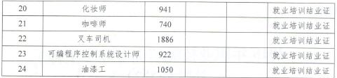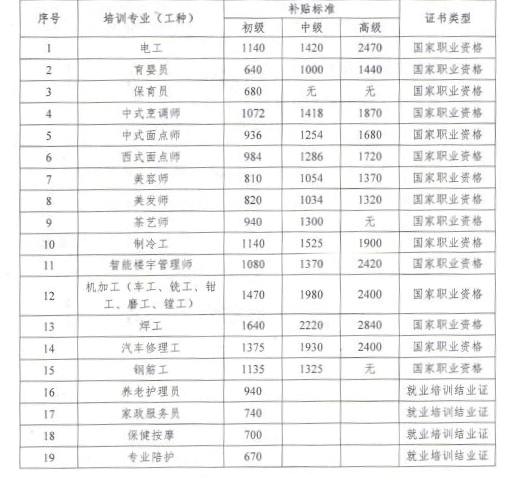 以下专业(工种)按800元标准补贴: