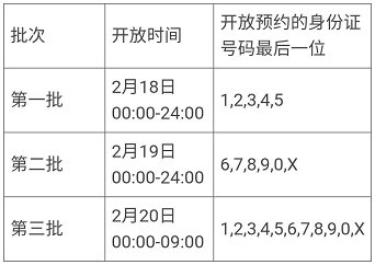 第二轮开放预约时间为2月18日00:00至2月20日09:00。
