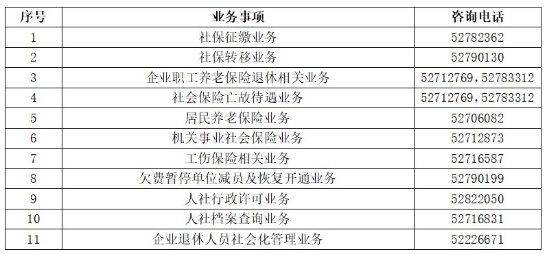 市人社(社保中心)窗口常见业务咨询电话: