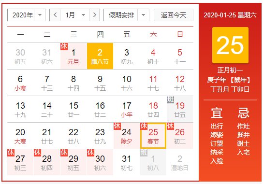 ②2020年1月31日-2月1日请假2天,可以与周末连休拼成10天假。