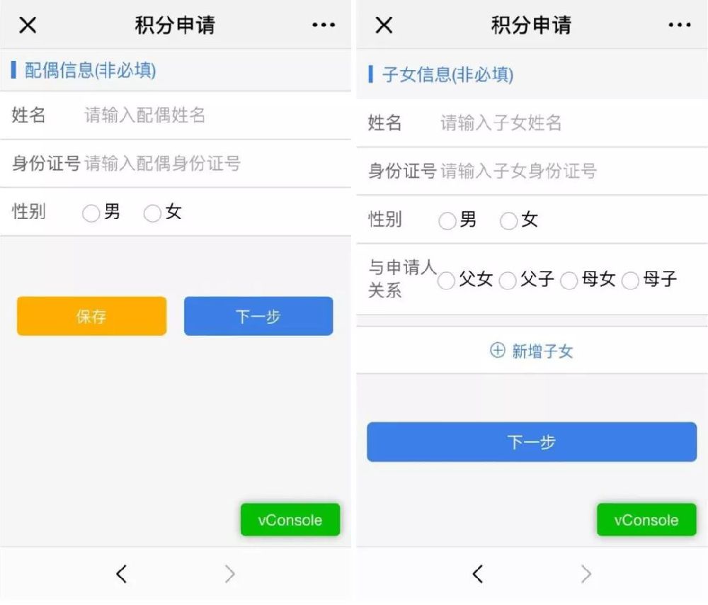 3、填写配偶信息(非必填),添加子女信息(非必填)。