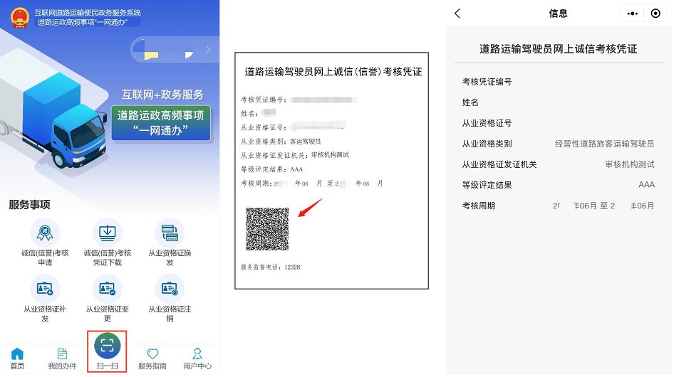 通过【扫一扫】功能,验证诚信考核凭证信息。