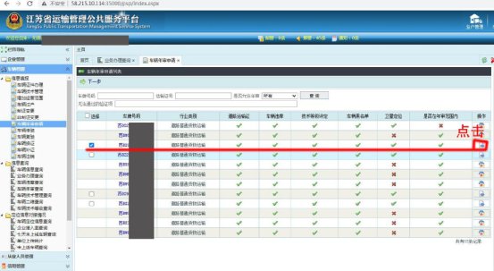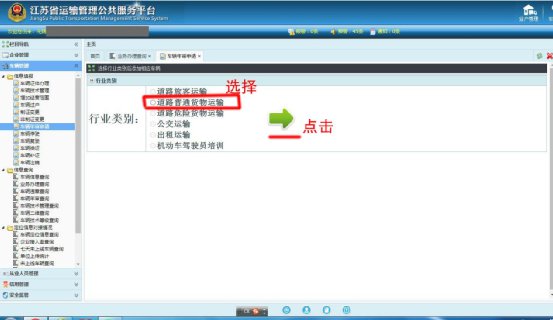 第二步:点击车辆管理——车辆年审申请,选择道路普通货物运输——点击箭头