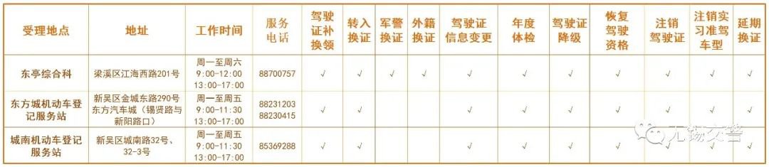 无锡驾驶证业务办理地址+业务范围: