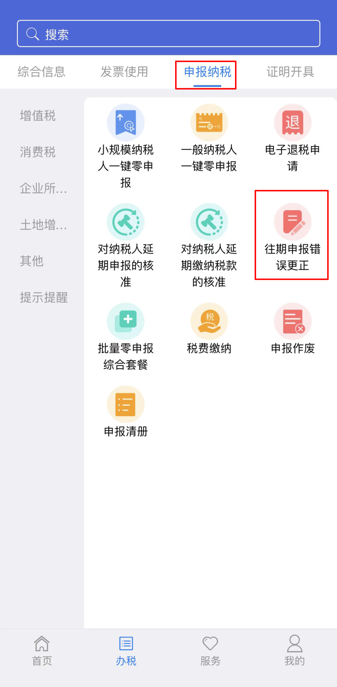 往期更正申报可以“不接触 网上办”,江苏税务APP办理流程: