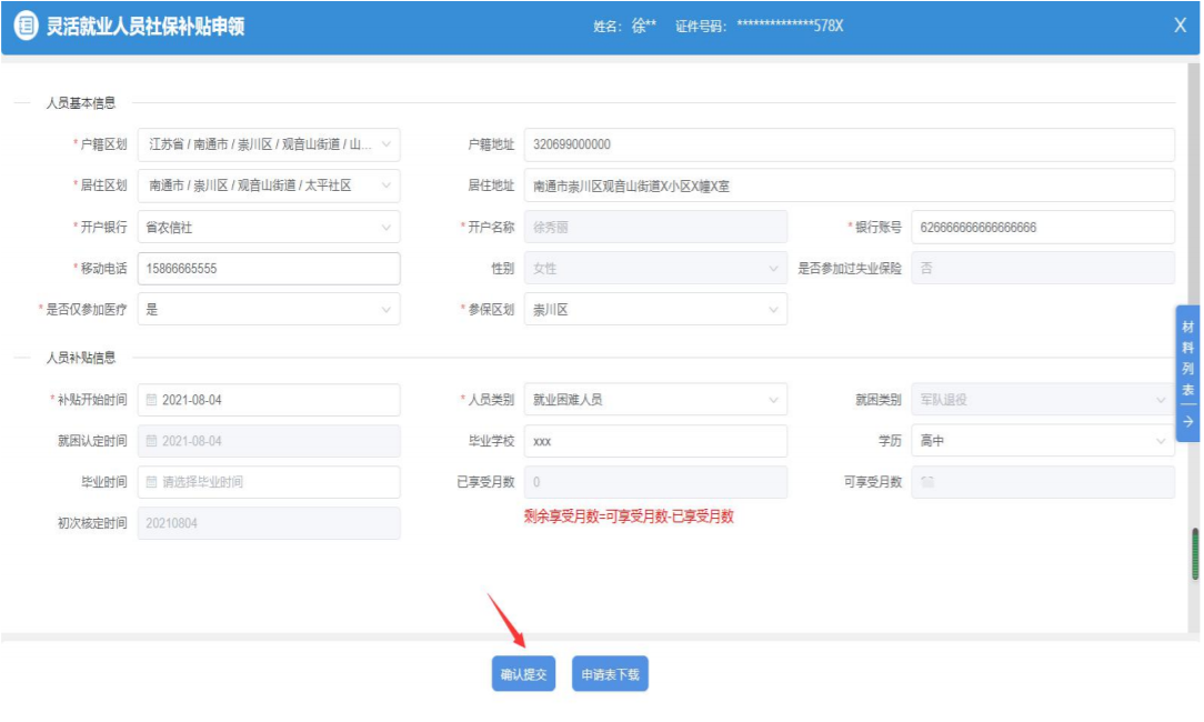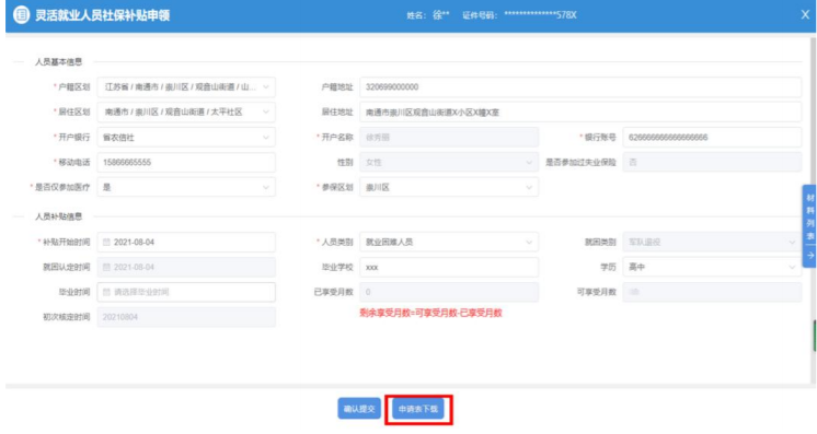 2. 完善“人员基本信息”和“人员补贴信息”,“ 户籍区划”及“居住区划”要到具体的社区(村);下载并按要求填写“灵活就业人员社会保险补贴申请表”