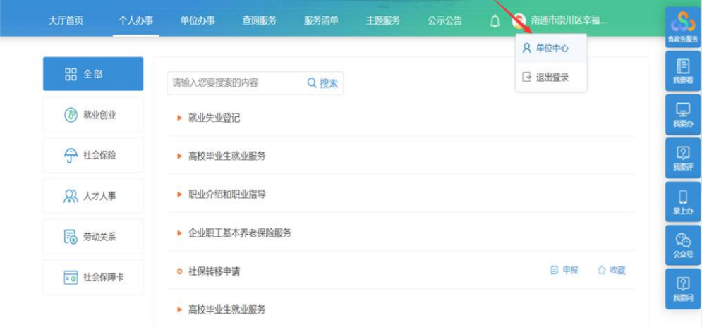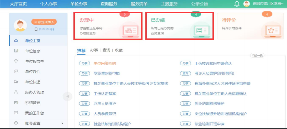 5.办理完成后可在“单位中心”中查看所办理事项进度和通过情况。