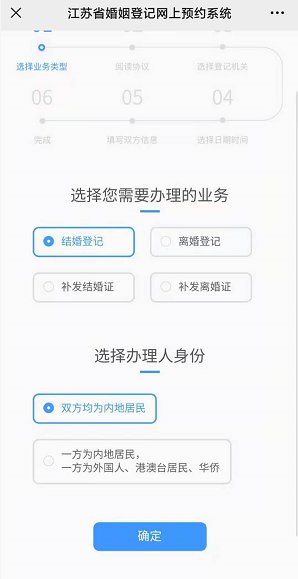 (三)阅读《江苏省婚姻登记网上预约协议》,点击“确定”