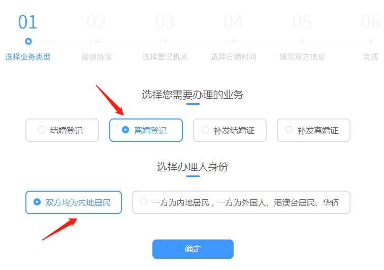 选择“预约婚姻登记”,选择“离婚登记”