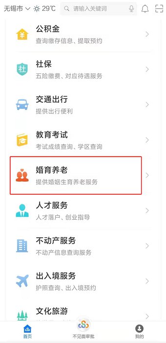 (二)在江苏政务服务栏目中选择“婚育养老”,点击进入