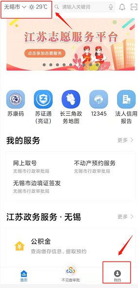 (一)注册登录账号,在首页将自己的政府服务地区选为“无锡市”