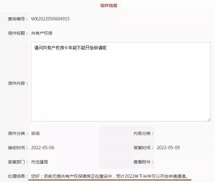 根据无锡市住建局官网网友咨询关于共有产权房今年能否开放申请的问题。市住建局回复称目前无锡共有产权保障房正在建设中,预计2022年下半年可以开放申请通道。