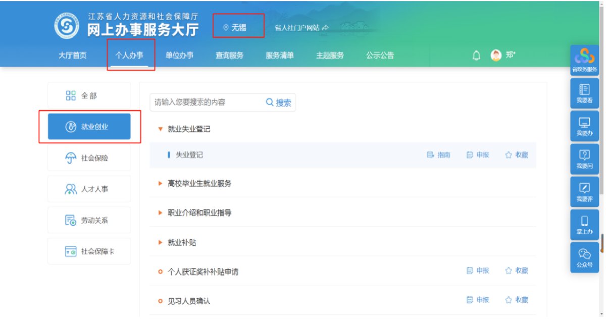 第一步:注册并登录江苏省人社厅网上办事服务大厅(https://rs.jshrss.jiangsu.gov.cn/index/),地区切换到无锡。