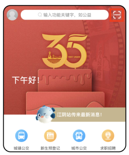 1、请提前下载好“最江阴”APP(或更新至最新版本)