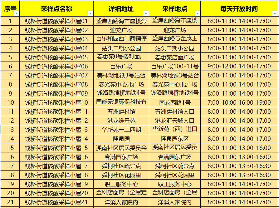 无锡钱桥街道核酸采样小屋地址+开放时间