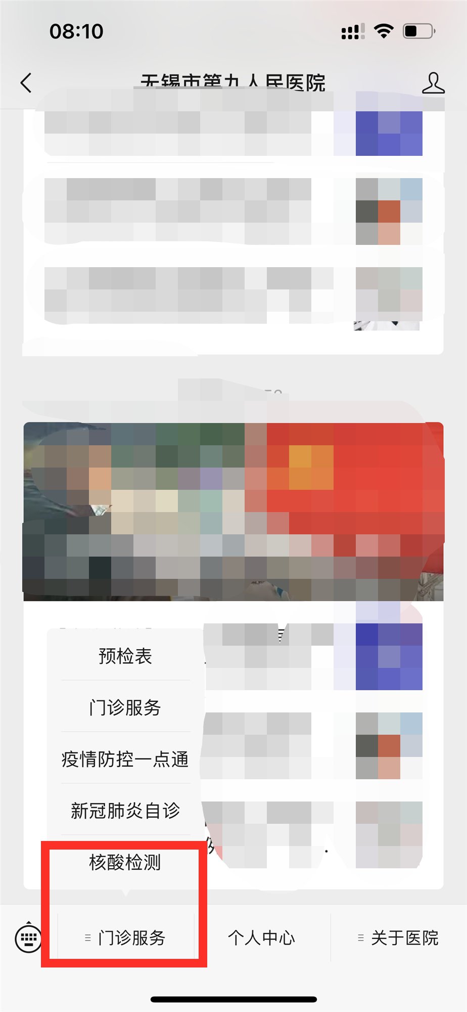 关注“无锡市第九人民预医院”微信公众号——进入公众号——选择“门诊服务”——核酸检测