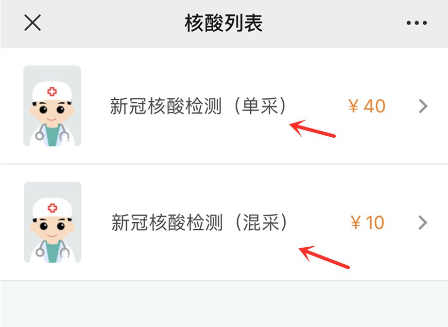 自行选择单采或混采进行缴费(注意,目前核酸检测已经降价,图示价格仅为参考)