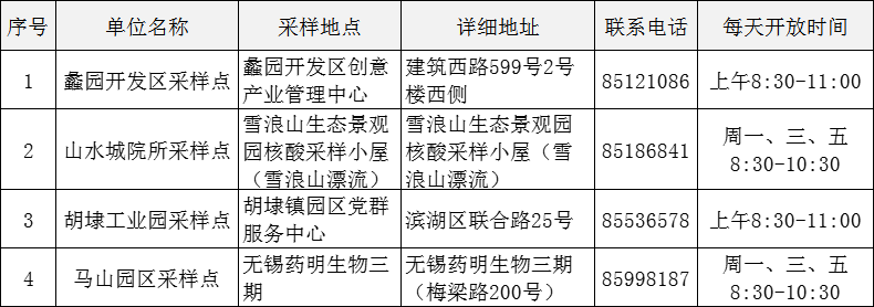 2022无锡滨湖区各类核酸检测点汇总(更新于4月10日,拨打电话需加区号0510):