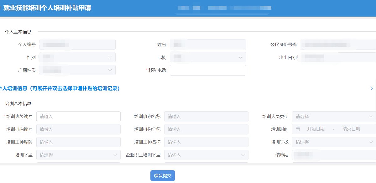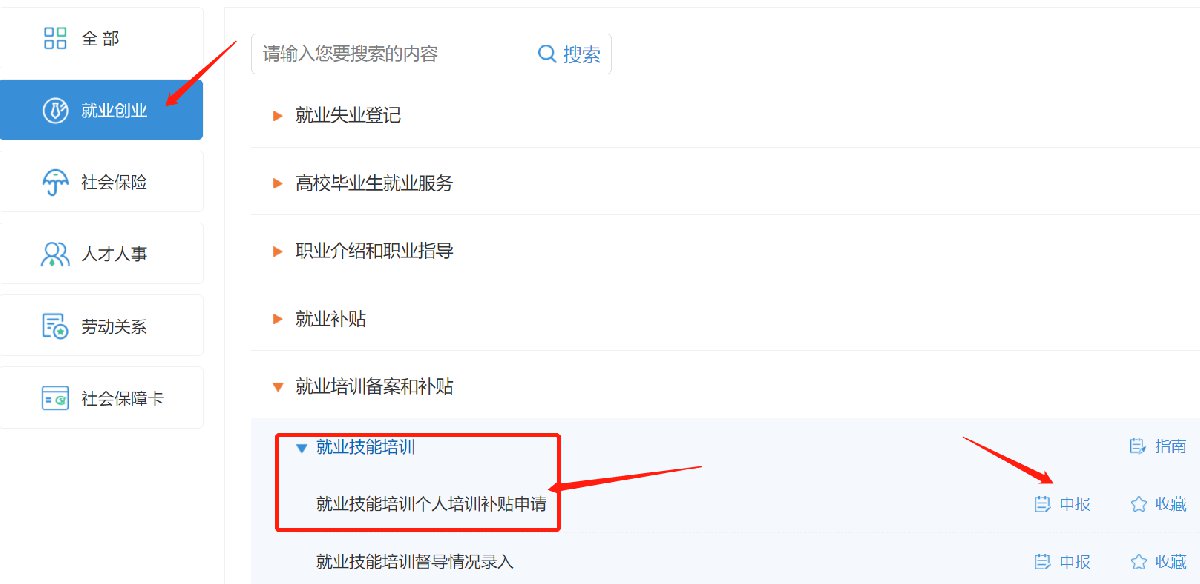 进入系统后,点击【就业创业】-【就业培训备案和补贴】-【就业技能培训个人培训补贴申请】