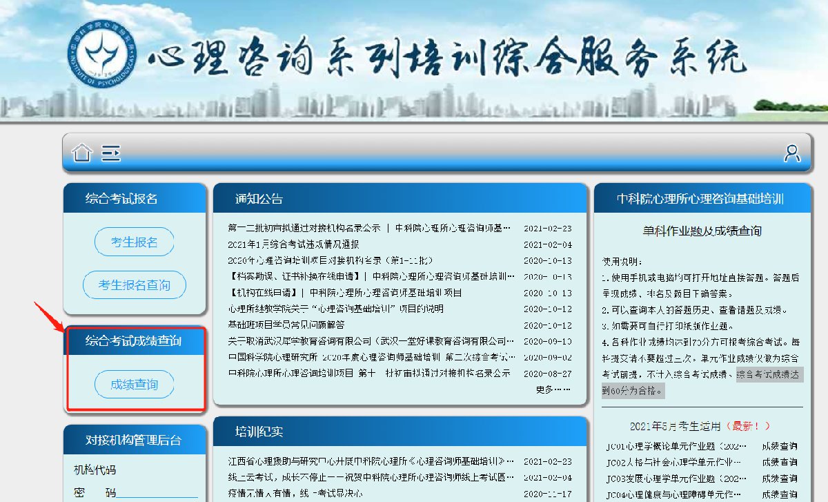 1、登陆中科院心理所心理咨询培训综合服务系统