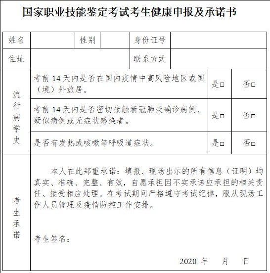 5、打印《疫情防控承诺书》并签字,承诺书在考试当天交给考务人员。