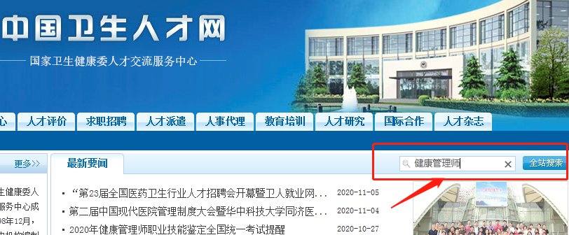 第一步:进入“中国卫生人才网官网”(https://www.21wecan.com/),直接搜索“健康管理师”