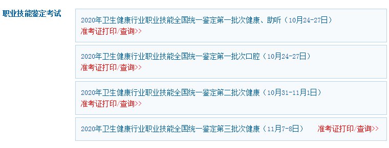 2、在职业技能鉴定一栏选【健康管理师准考证打印/查询】;