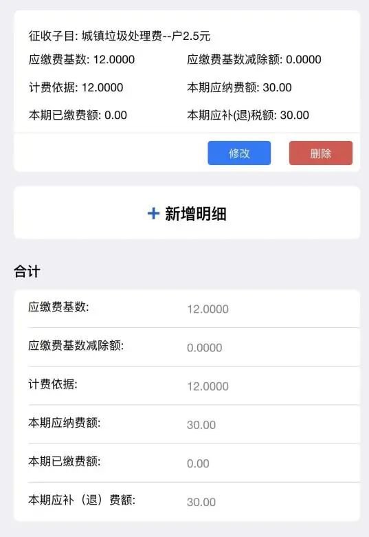 (1)申报完成后发现数据填写错误,若尚未缴纳费款,您可在此页面作废,若已完成费款缴纳,可联系当地税务部门进行退费。