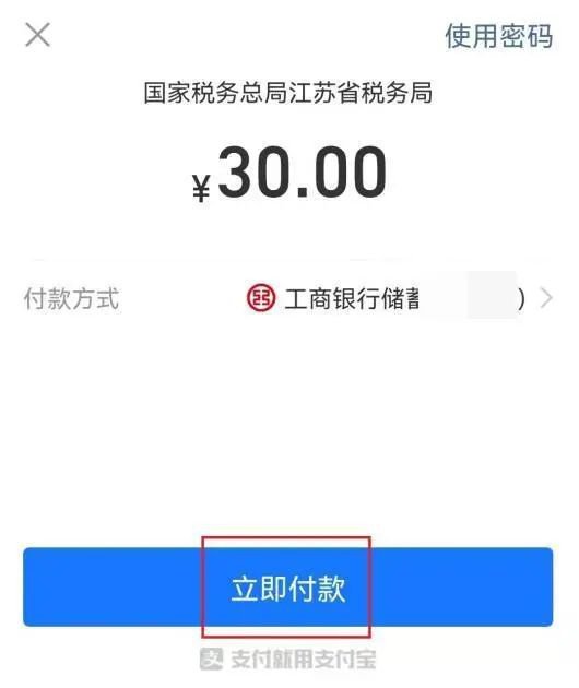 2、缴款方式目前仅可以选择支付宝缴费,点击【立即付款】进行缴费。