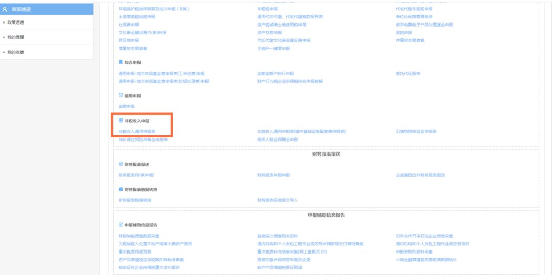 2.在【非税收入申报】模块选择【非税收入通用申报表】。