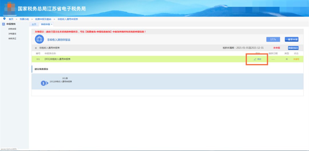 4.进入申报表后,点击【数据初始化】,初始化完成后点击【修改】。