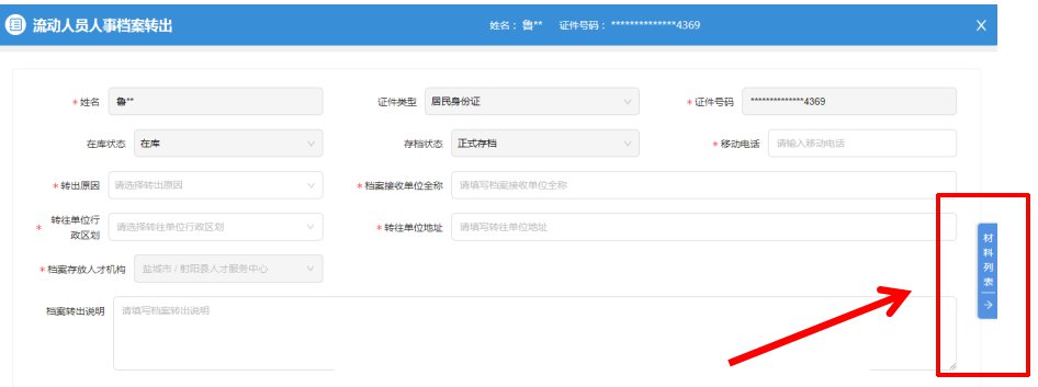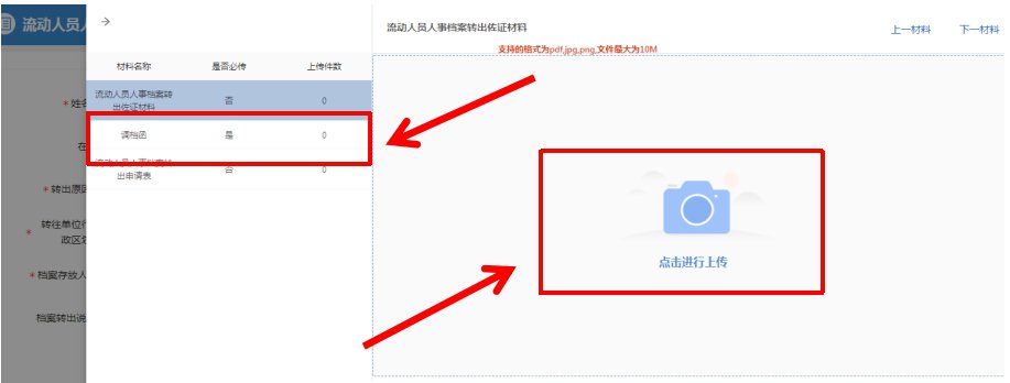 登录江苏人社网办大厅——点击个人办事——人才人事——流动人员管理服务——流动人员人事档案转出申报(填写须知:带*号的为必填项,转往单位地址需详细填写至门牌号)——点击右侧材料列表——在调档函处上传调档函——确认提交