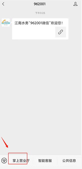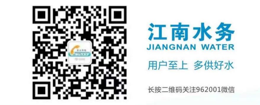 关注江南水务微信公众号“962001”,进入“掌上营业厅”,可以在线办理水费支付、二手房过户、阶梯水价人口调整、单位电子发票申请、用水情况查询等。扫码关注: