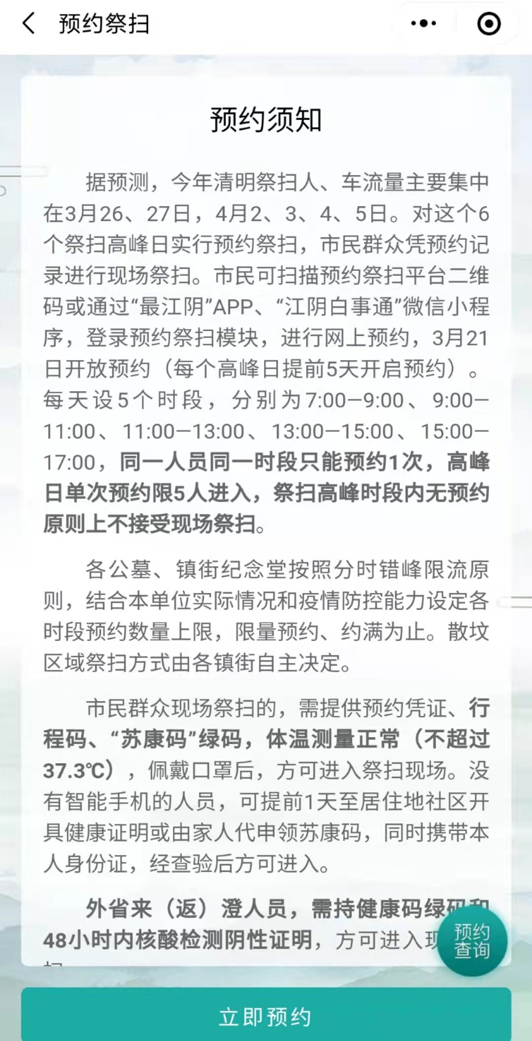 江阴扫墓怎么在小程序预约? 江阴花山扫墓要预约吗