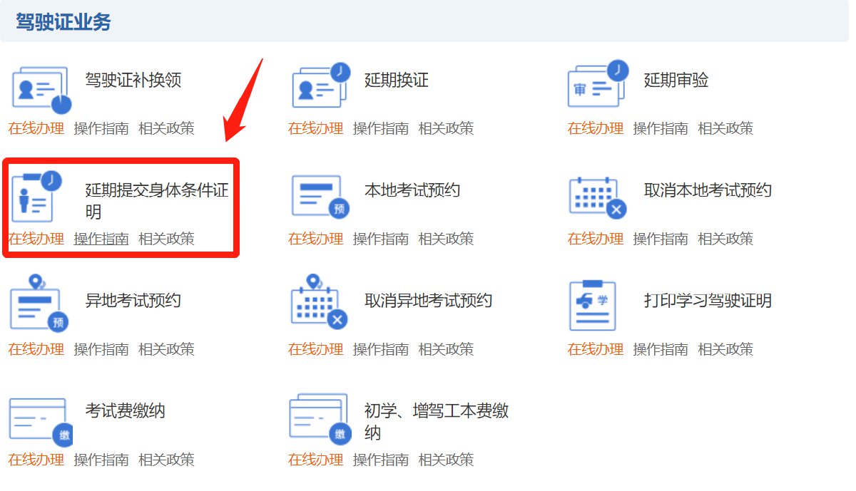 对机动车驾驶人因服兵役、出国(境)等原因,无法在规定时间内办理驾驶证提交身体条件证明的,可以通过互联网平台延期提交身体条件证明。