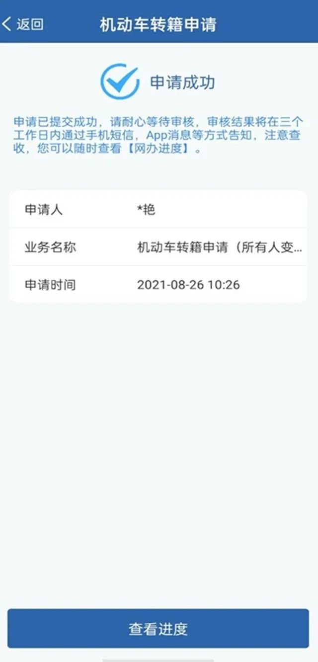 需要提示的是,对未通过网上申请直接到转入地车辆管理所申请二手车跨辖区转移登记的,车辆管理所将预受理业务,并查验机动车,待电子化机动车档案转递后,再审核办理,重新核发的机动车牌证将通过邮寄或自取方式交现机动车所有人。