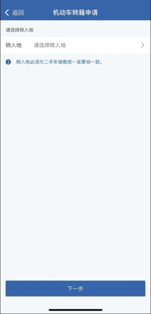 对二手车在转入地交易的,现机动车所有人可以通过公安交通管理互联网服务平台向转入地车辆管理所提出申请车辆跨辖区转移登记。申请前,应当认真阅读“业务须知”,确认机动车是否符合转入地相关规定,按照提示录入申请信息。