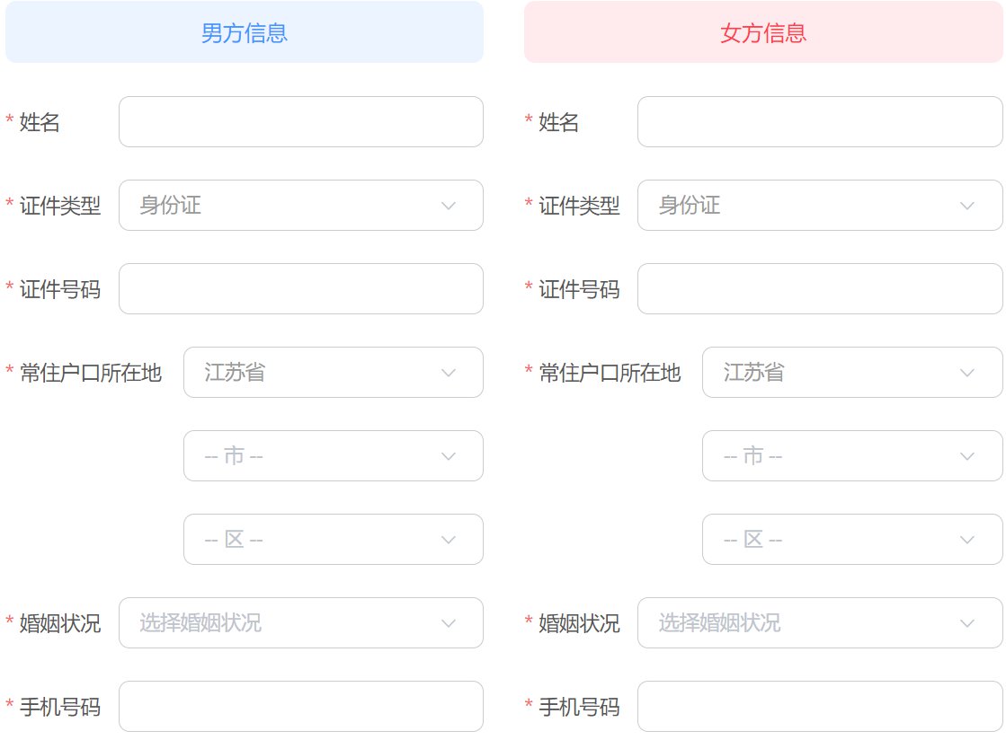 按照页面提示,填写男女双方信息(姓名、证件号码、常住户口所在地、婚姻状况、手机号码等)进行预约。