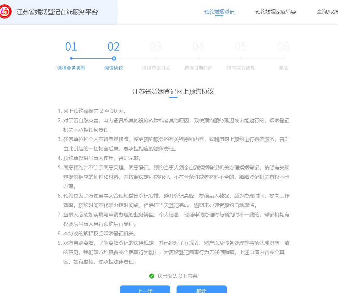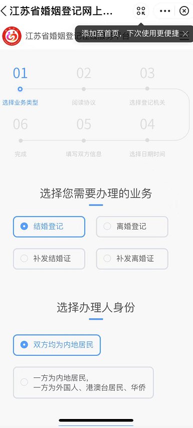 (3)江苏婚姻登记在线服务平台:点此进入,进入后根据操作预约即可。