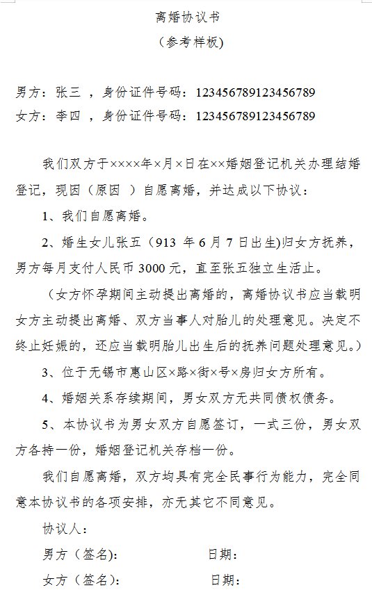 无锡市离婚协议书模板(无锡离婚协议书在哪里拿)