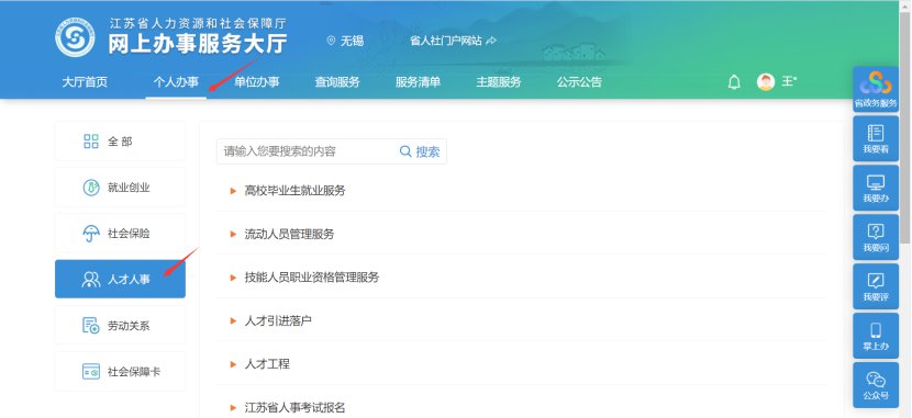 1、申请人登录“江苏省人力资源和社会保障厅网上办事服务大厅”(https://rs.jshrss.jiangsu.gov.cn/index/)
